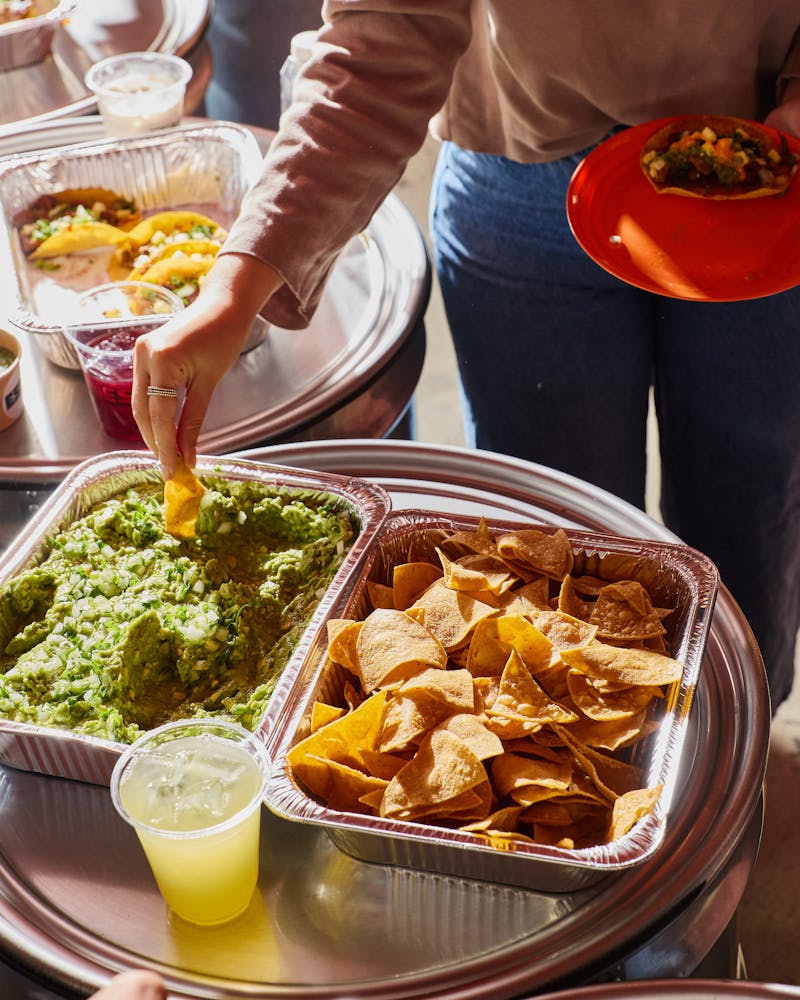 We offer taco trays of our corn tortilla tacos, guacamole & totopos, aguas frescas, and cocktails for your next gathering.